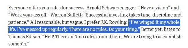 No matter what one builds, it is important to understand that there are literally no rules for success.