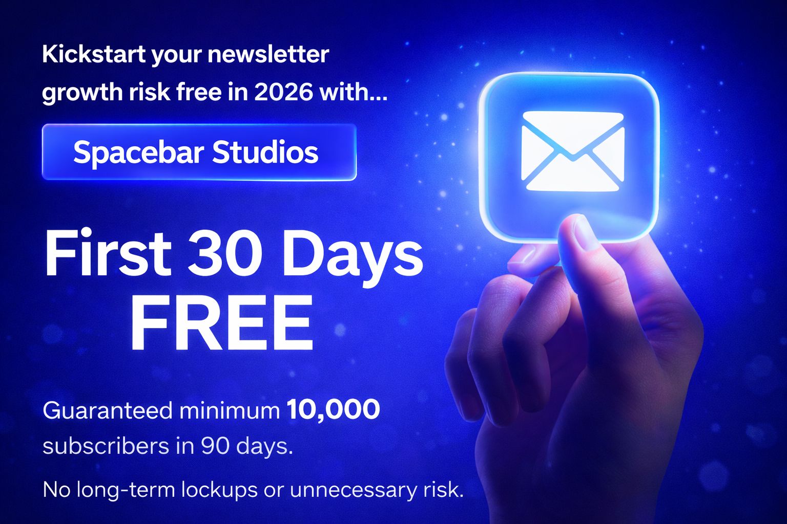If you’re ready to launch a newsletter Spacebar Studios will honor your first 30 days free.
